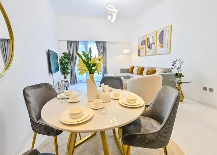 O Iconic Sea View Marina - Lux New Apartamento garante o seu conforto ao fornecer cozinha equipada com refrigerador, forno e artigos de vidro. O Iconic Sea View Marina - Lux New Apartamento de 88 m² também está a cerca de 500 metros da paragem Big 21 Media city e a uma distância aproximada de 10 minutes a pé da de Nakheel. Com banho turco, jacuzzi e sauna, o alojamento tenta os hóspedes com relaxamento adicional através de bandagem corporal, pedicure e manicure. Terraço tem vista para o lago, garantindo a estadia mais agradável.